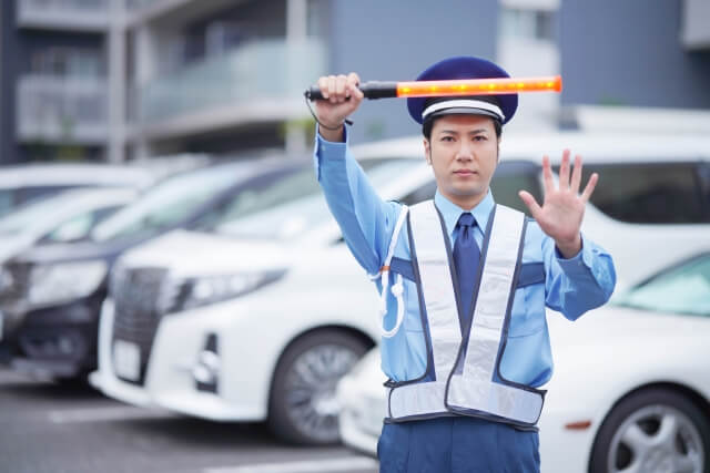道路の工事現場や駐車場など、事故が発生しやすいと思われる場所において、通行する人や車両の誘導を行います。